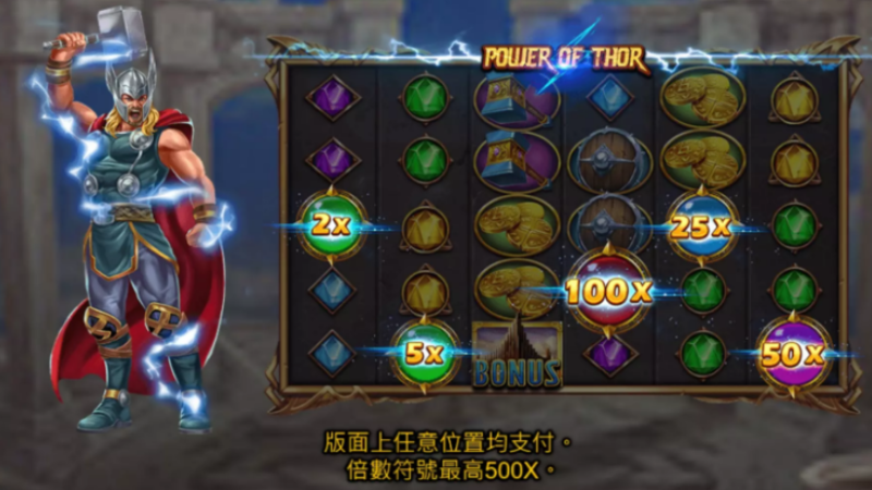 雷神之鎚由RSG電子推出,以雷神索爾的電影作為這款遊戲的主題,遊戲以全版倍數、消除掉落的方式進行,在版面上的任意位置均支付,沒有賠付線,版面的右手邊融入了電影角色,進入遊戲就像深入其境一樣,非常的逼真!